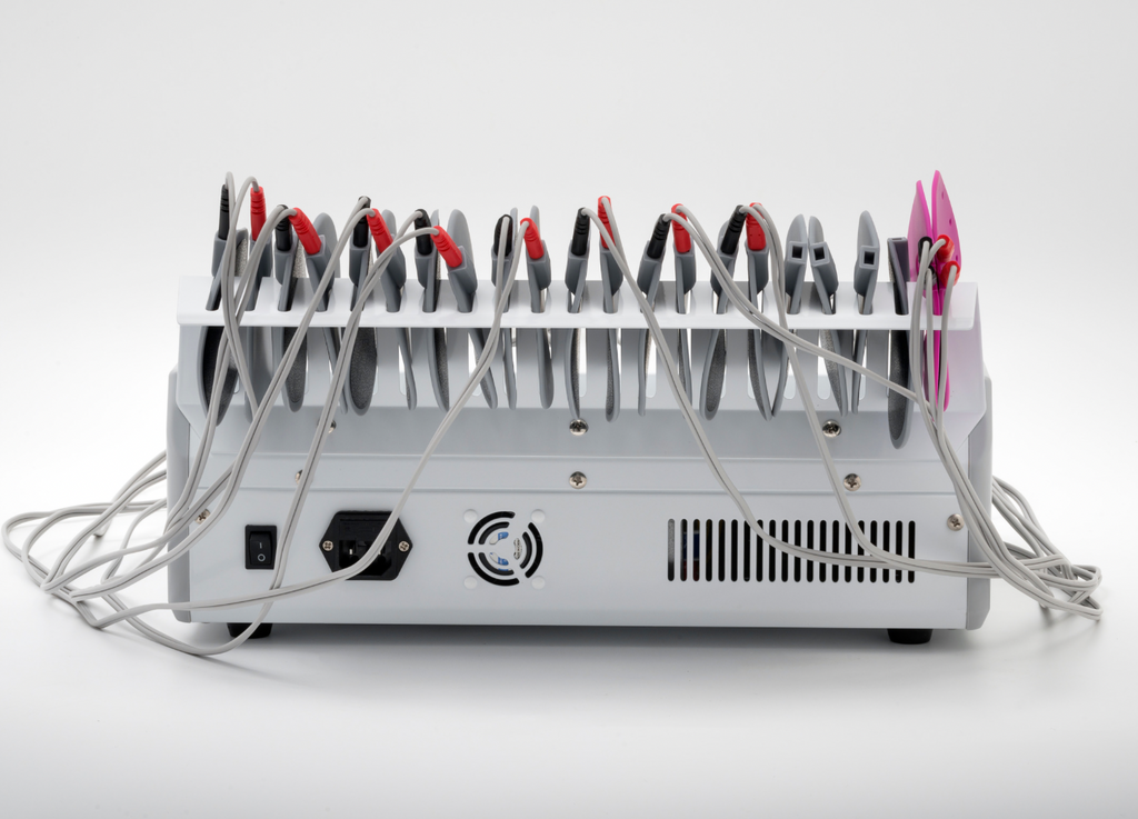 The machine creates electronic pulses, which stimulate special points on the body, which can accelerate metabolism, resulting is remarkable weight loss and skin tightening.
