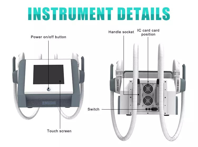 Combines Electromagnetic Stimulation (EMS) with Radio Frequency (RF) for enhanced muscle building and fat burning